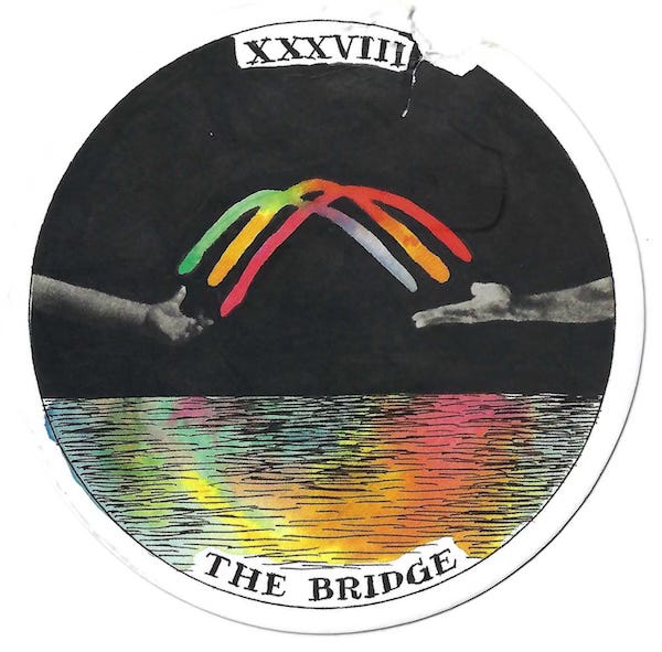 The archetype guidebook for the Bridge card suggests going deeper and learning more about Bifröst — the burning rainbow bridge of Norse mythology — but the Rainbow Bridge associated with pets and their passing is a more recent phenomenon.