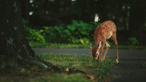 We frequently see deer on our mountain hikes — and only a few times in the grove of trees across the street from our house — but never in the parking lot.