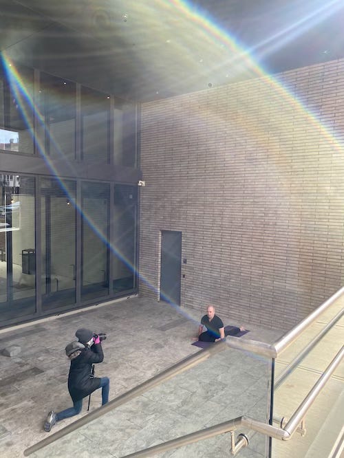 The setting described above — six months before — and for a yoga shoot, not jumping rope.