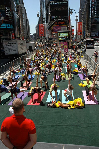 Specifically, it happened on my most memorable equinox moment ever, when I taught a live yoga class in Times Square.