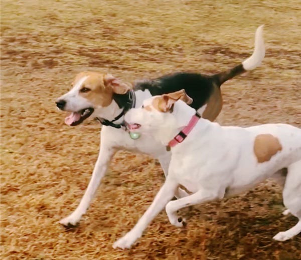 As our dogs frolicked, we chatted about their shared DNA — we’d both done Embark testing, and they each have a lot of Treeing Walker Coonhound — before they shifted their truck into Park.